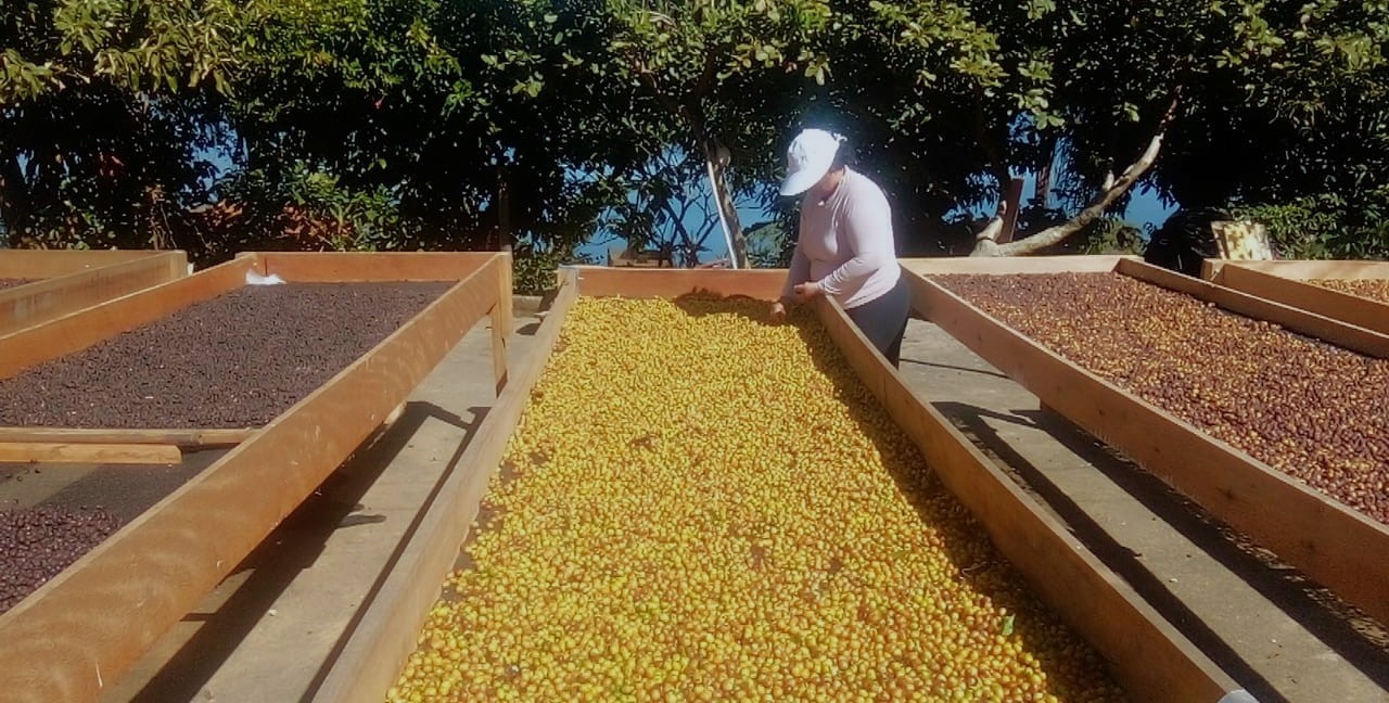 Mapeamos os talhões desde o início da florada, buscando cafés com altos índices de BRIX (açucares), e através da colheita seletiva manual retiramos do pé apenas os frutos maduros e bem granados, que imediatamente são lavados e acomodados em terreiros suspensos sombreados. Descansam e secam até o momento correto para a torra.